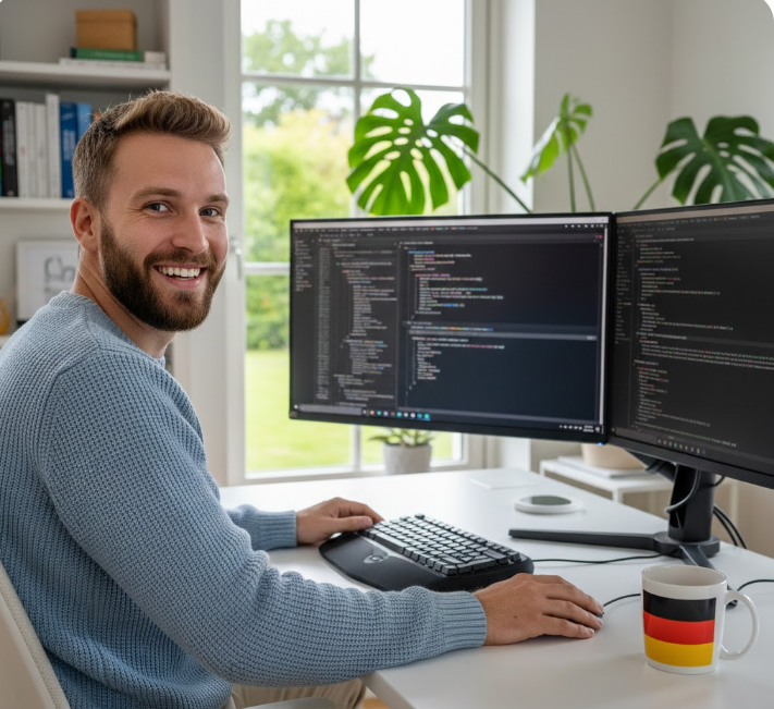 Muss ich meine eigene Technik kaufen? Nein! In Deutschland ist es bei seriösen Remote-Arbeitgebern Standard, dass die komplette Hardware (Laptop, Monitor, Headset) gestellt wird. Oft erhalten Sie sogar ein Budget für die Einrichtung Ihres Heimbüros.
